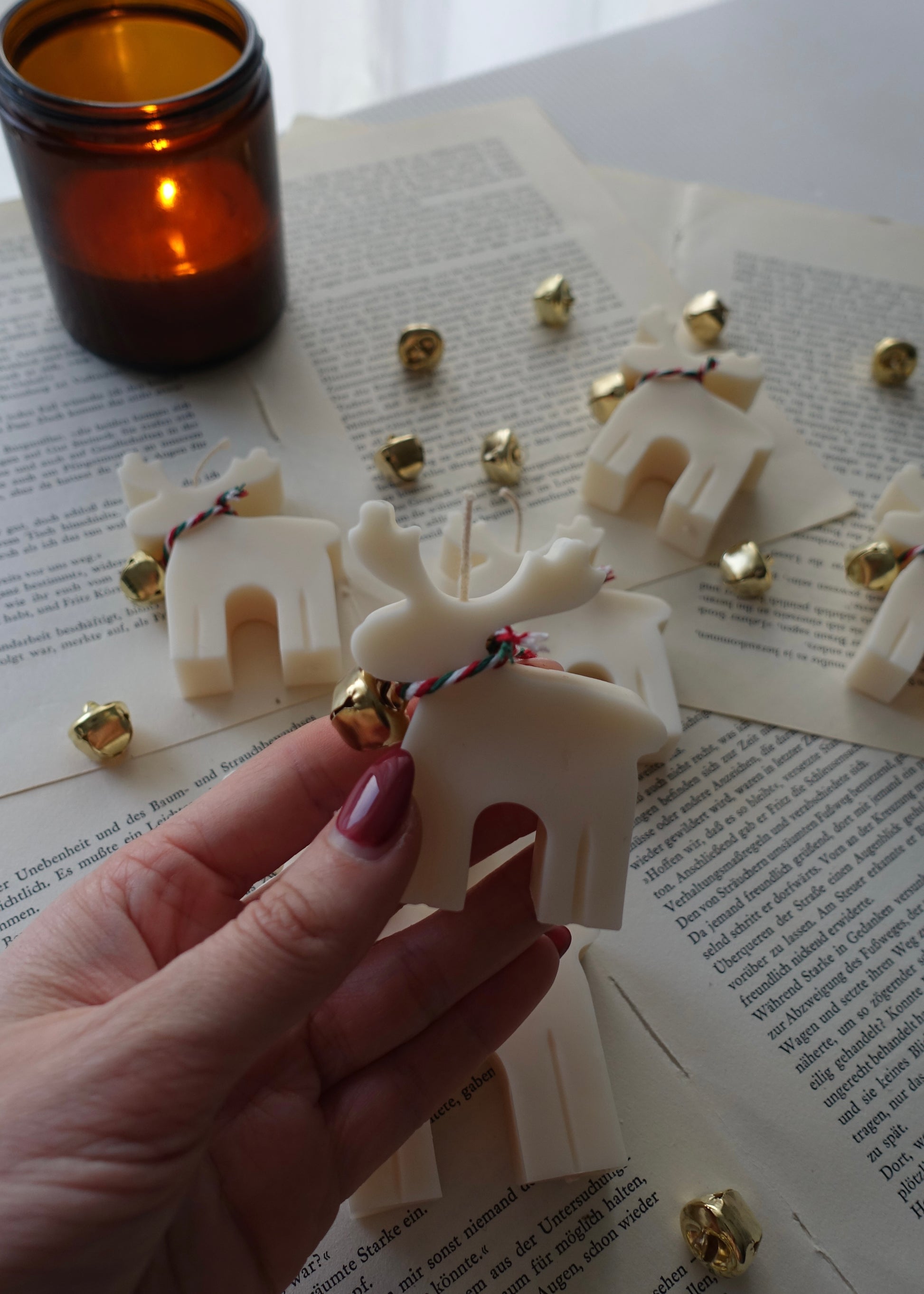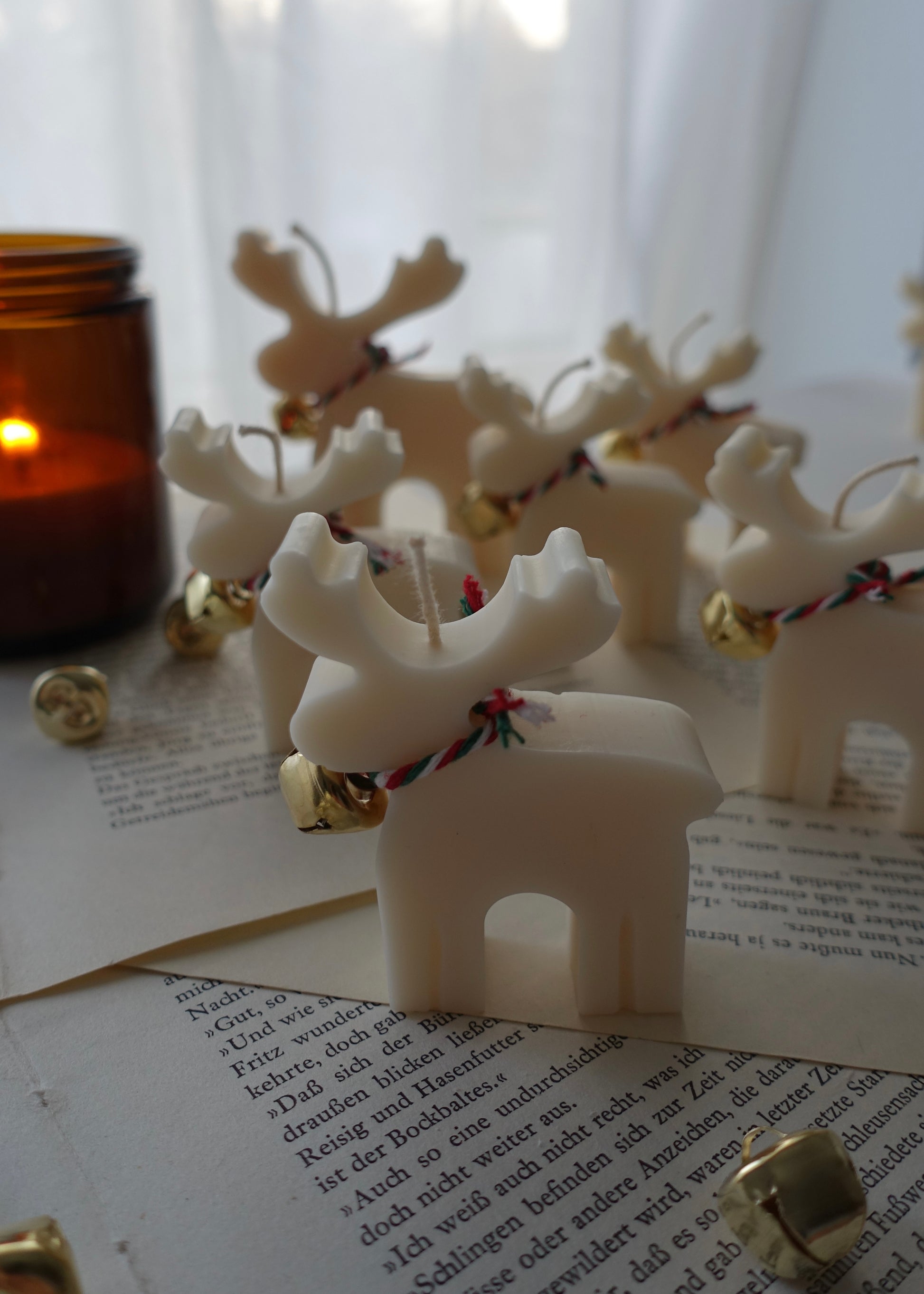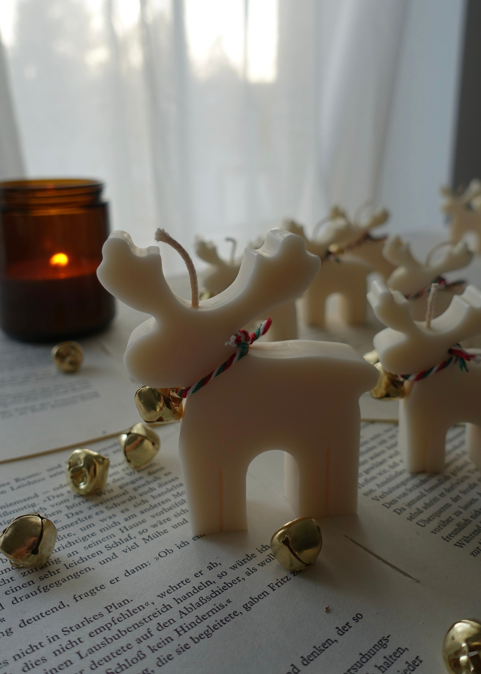 Lerne Rudi kennen – meine handgegossene Rapswachs-Kerze, die das klassische Rentier in liebevollen Details zeigt. In seinem schlichten weiß und der Glocke am bunten Halsband bringt Rudi süße Weihnachtsfreude und eine Prise Nostalgie in jedes Zuhause. Das